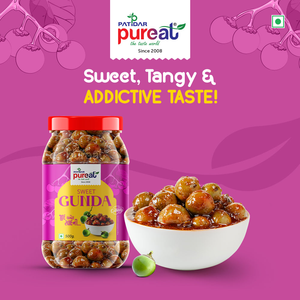 Gunda (41%), Sugar (53%), Mustard Crushed, Fenugreek Crushed, Red Chili Powder, Iodized Salt, Acidity Regulator (INS 330), Asafoetida, Preservative (INS 211).